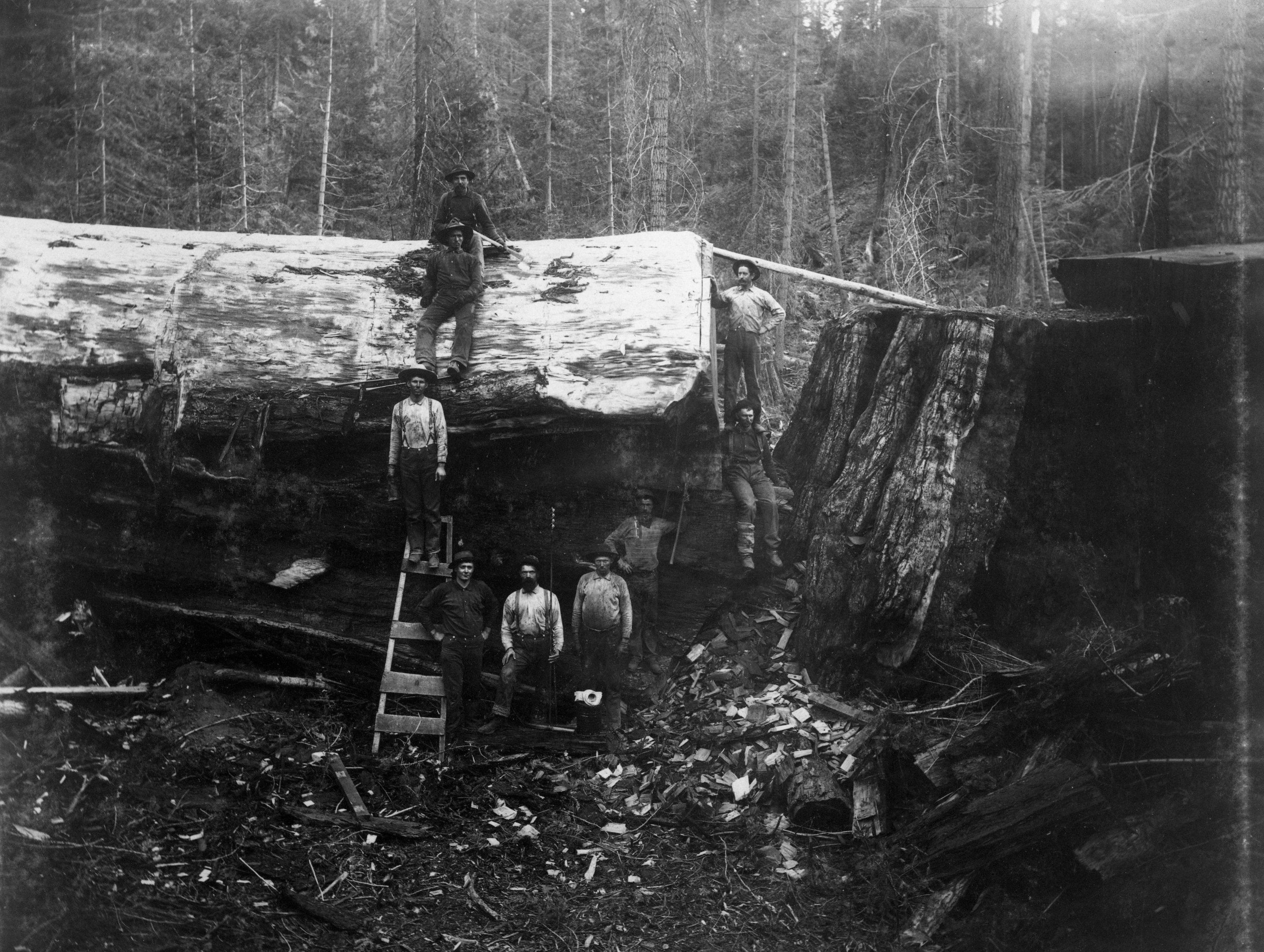 A photograph of the "Mark Twain" tree, 33 feet in diameter.