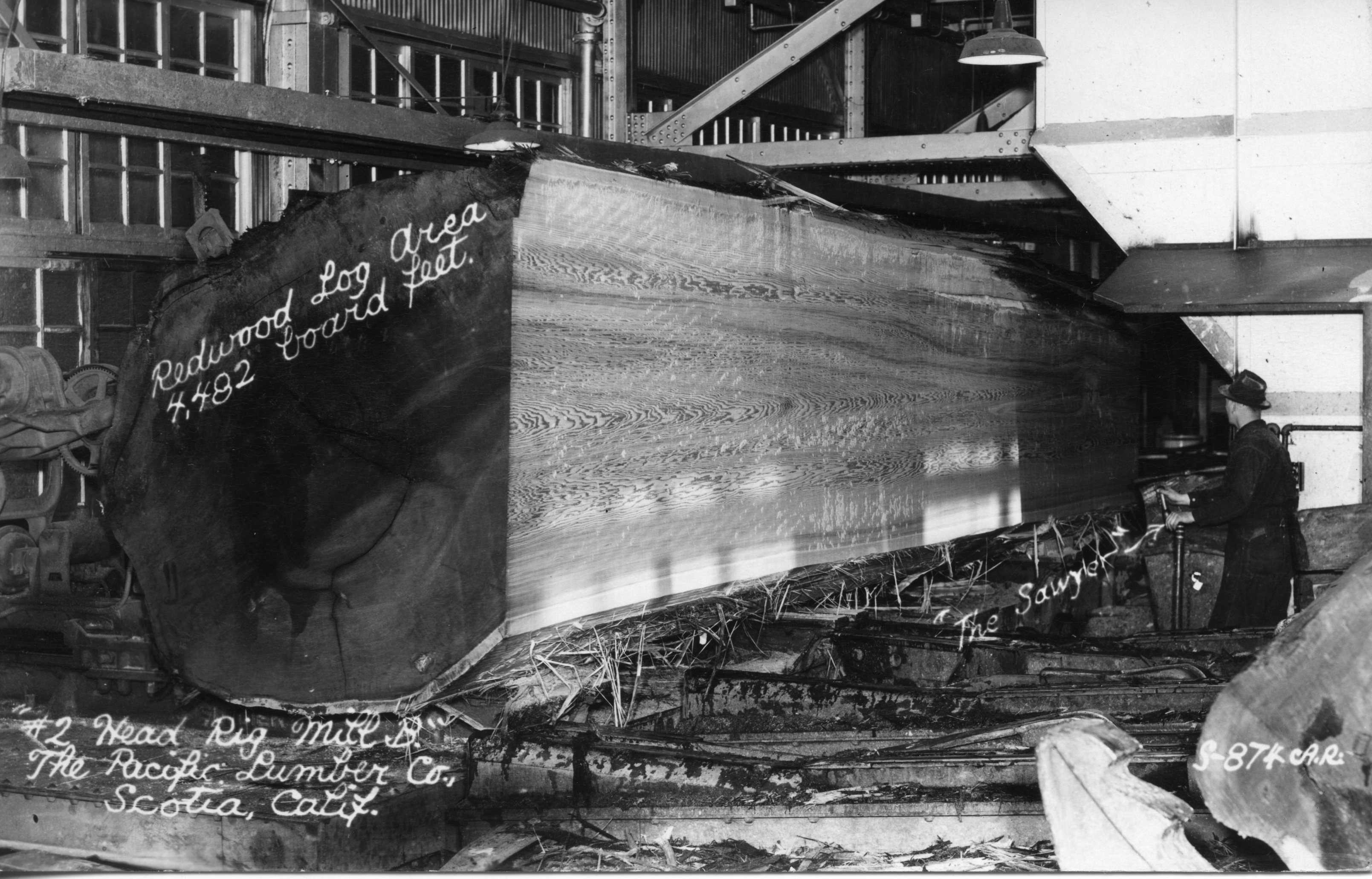 Image shot at the Pacific Lumber Co. in Scotia; the redwood board is a whopping 4,482 feet across.